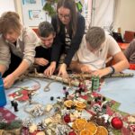 Wykonywanie wiszących ozdób świątecznych – przygotowywano dekoracje do zawieszenia na choince i w pomieszczeniach, wykorzystując różnorodne materiały plastyczne.