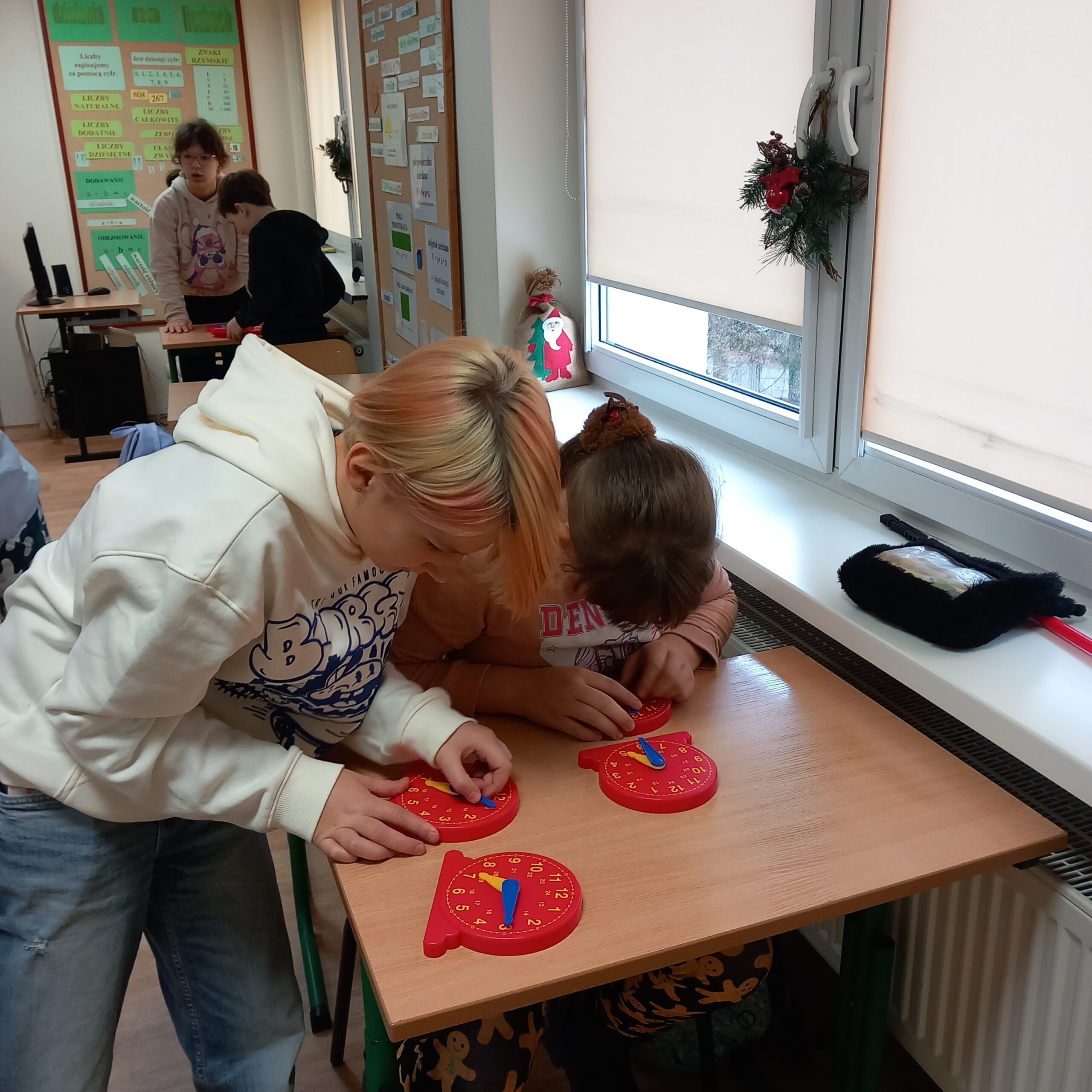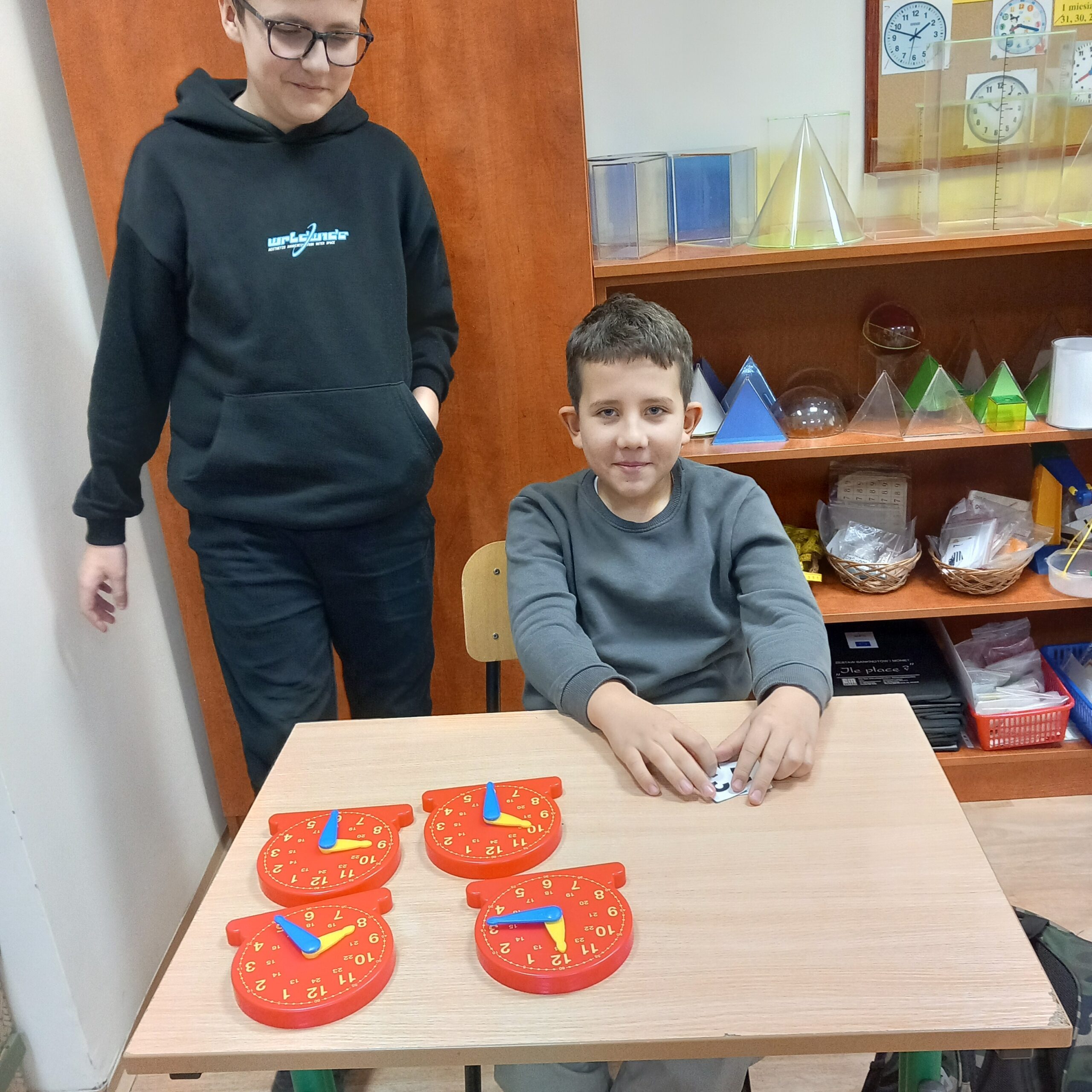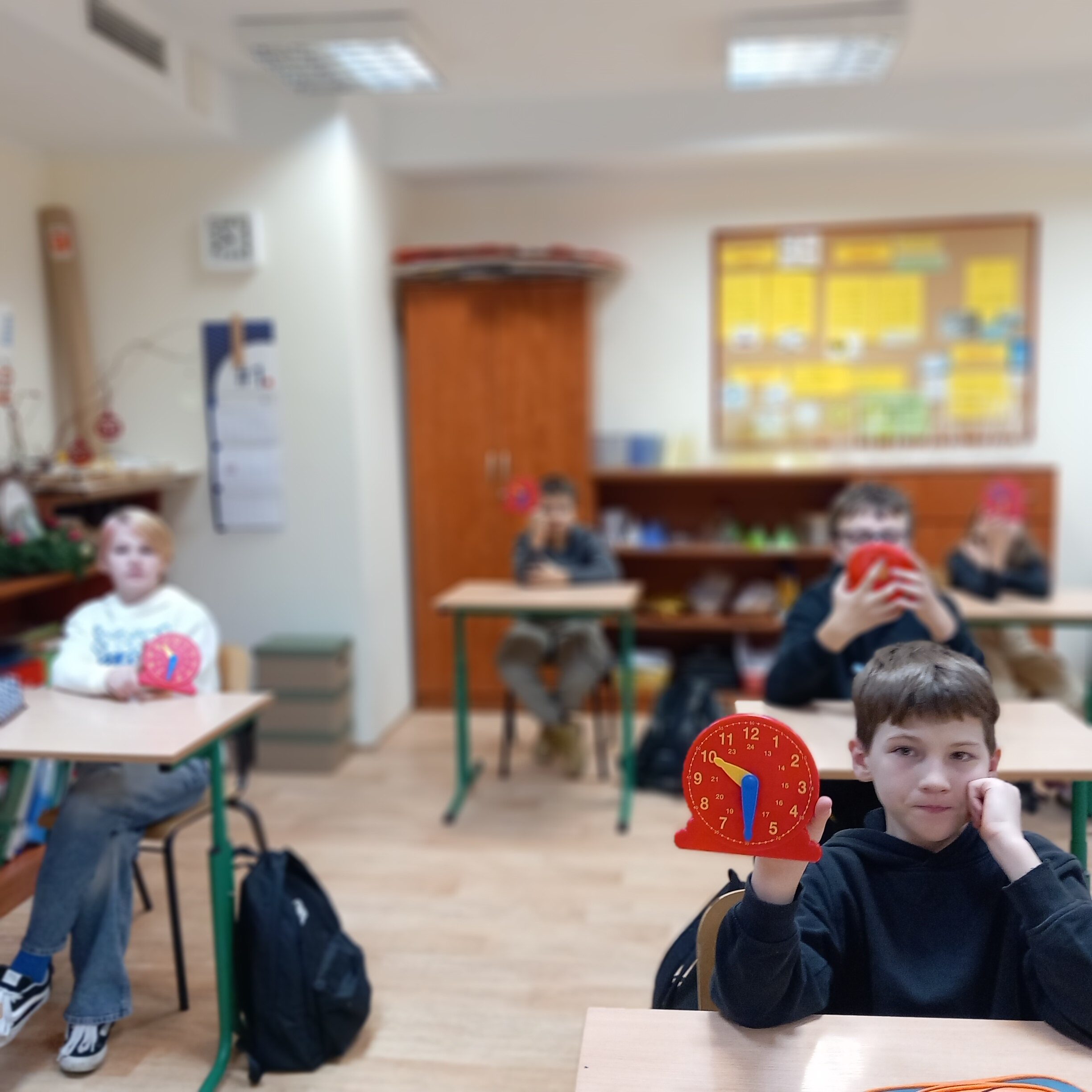 Za nami kolejne spotkanie w ramach projektu Czas na zegar. Uczniowie doskonalili umiejętność odczytywania i zaznaczania godzin. Zabawa połączona z nauką przyniosła dużo radości, a elementy zdrowej rywalizacji motywowały do współpracy.