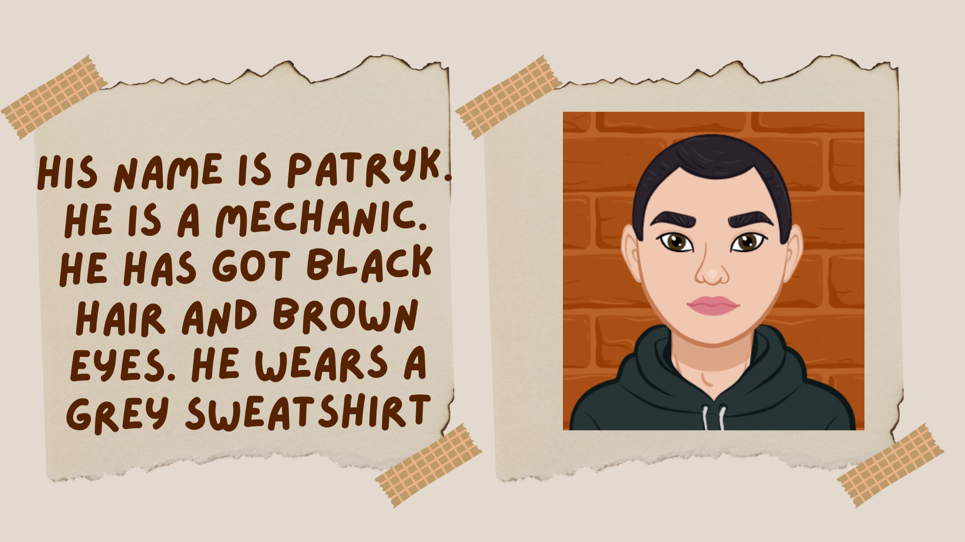 Uczniowie klas 7-8 SP podczas zajęć z języka angielskiego wykonali zdjęcia korzystając z aparatu Sony zakupionego z Laboratoriów Przyszłości, stworzyli opis przyjaciela korzystając z Google Translatora oraz stworzyli image przyjaciela przy użyciu Avatar Maker.