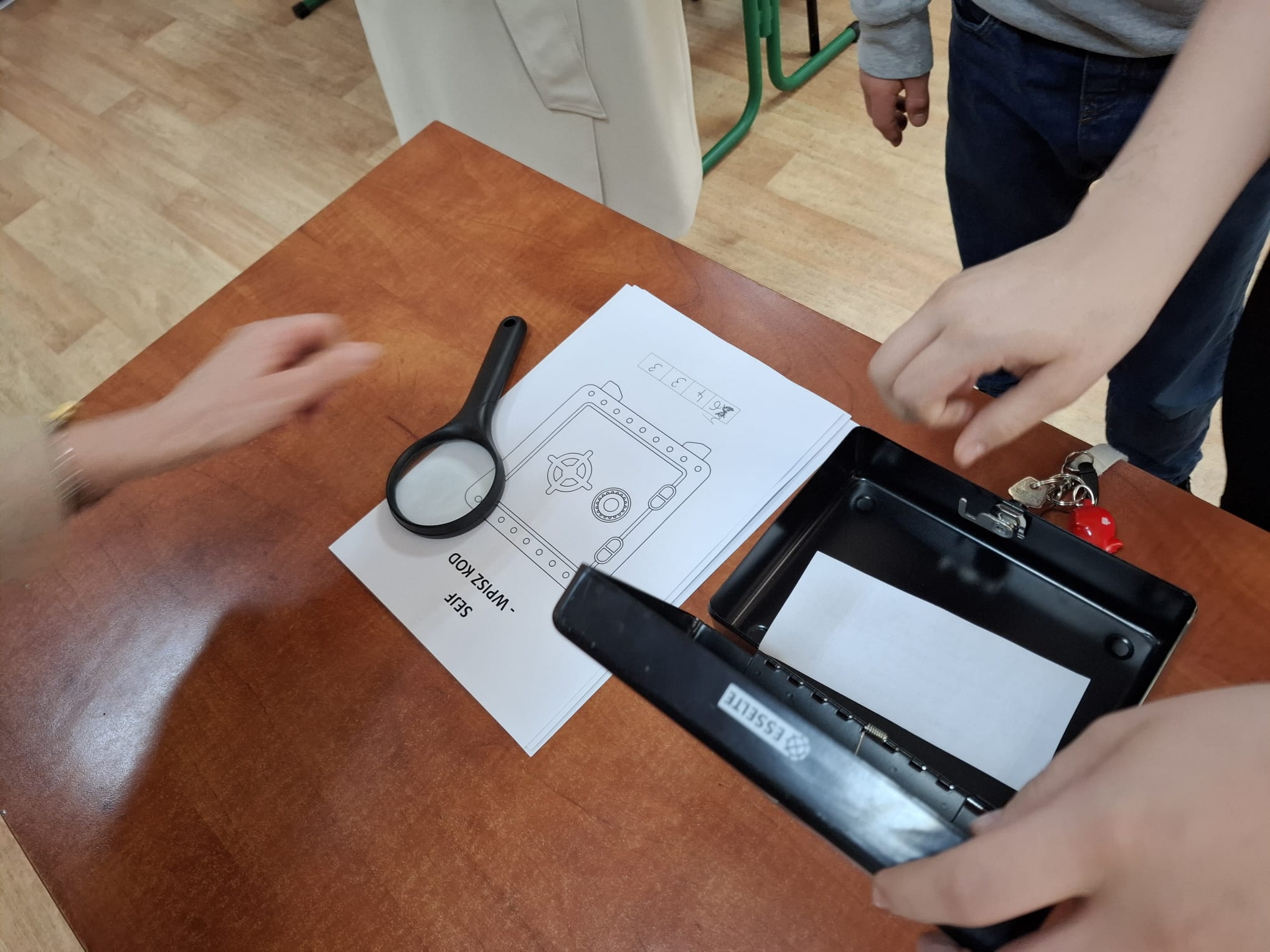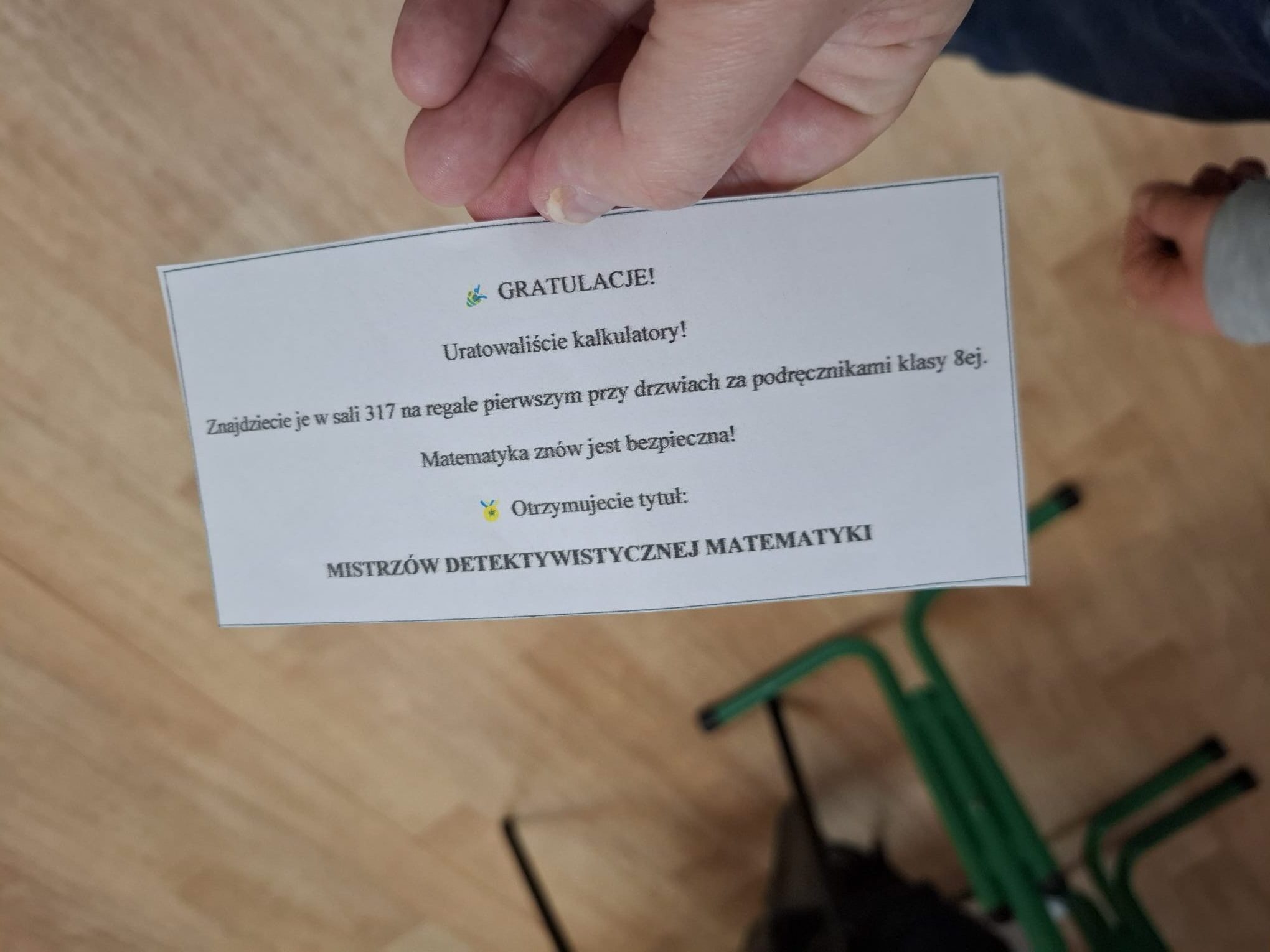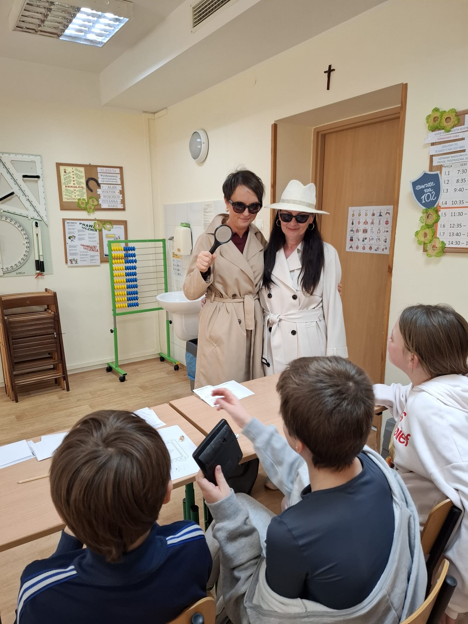 13 marca 2026 r. obchodziliśmy w naszej szkole Światowy Dzień Matematyki. Tak naprawdę, zamienił się on w szaleńczy wyścig detektywów z klas 4a i 5a, którego celem było odszukanie zaginionych kalkulatorów z sali matematycznej. Uczniowie, rozwiązując poszczególne zadania odkrywali tajny szyfr do sejfu, w którym umieszczone zostały informacje o miejscu ukrycia kalkulatorów. Zespoły detektywów spisały się na medal – udało się odnaleźć wszystkie zaginione kalkulatory! Uczestnicy zmagań otrzymali nagrody i naklejki Super Detektywa.