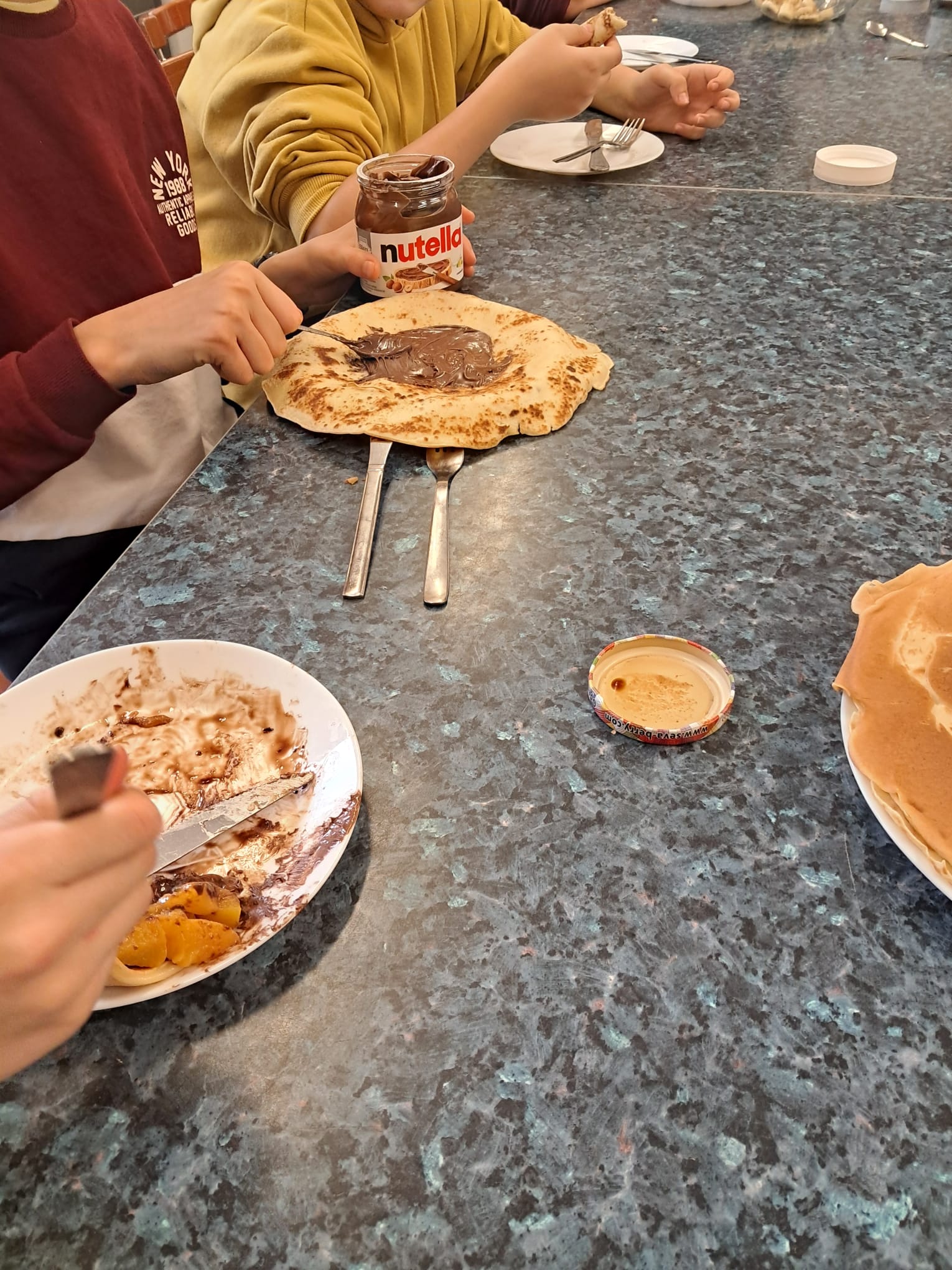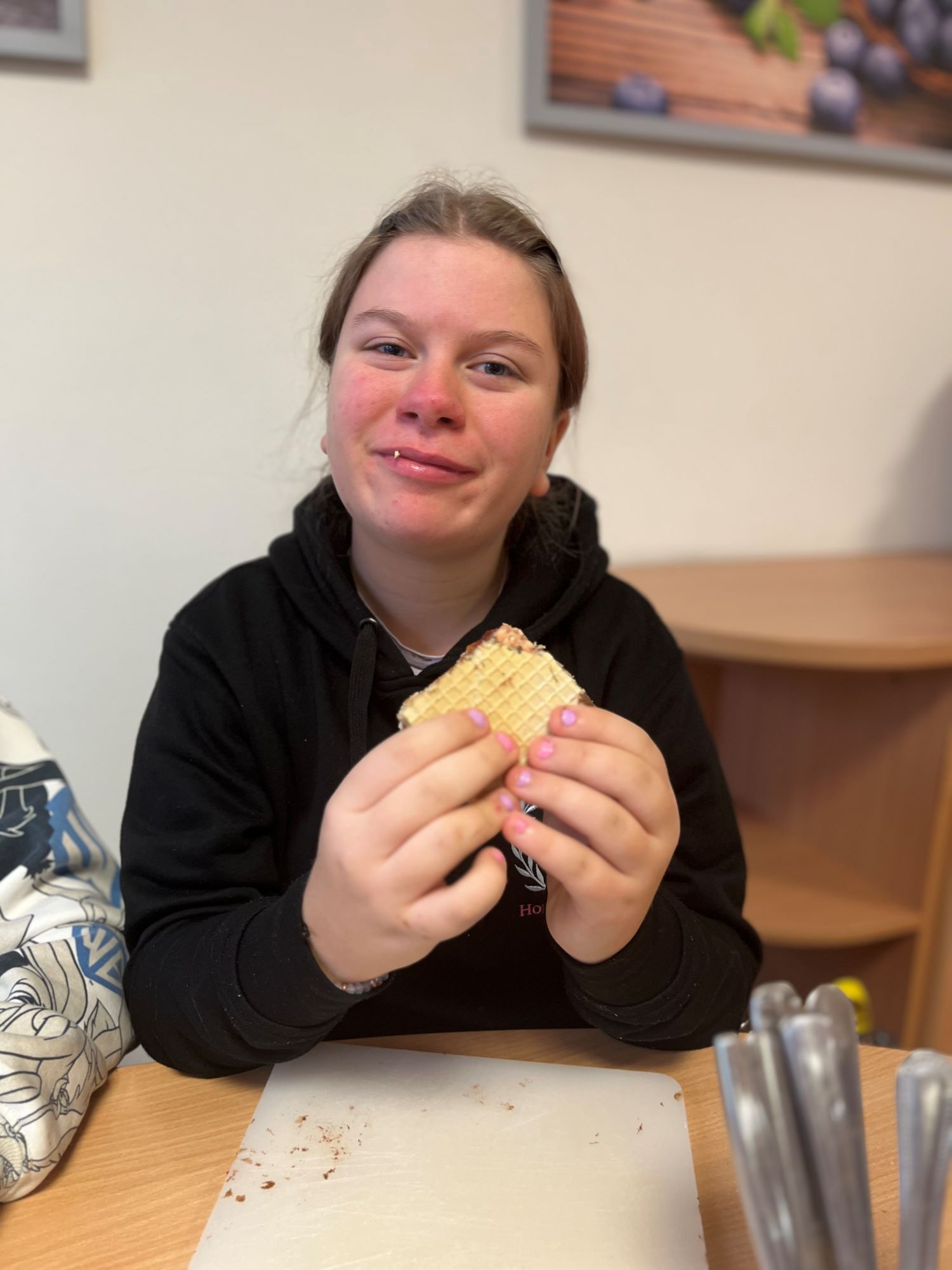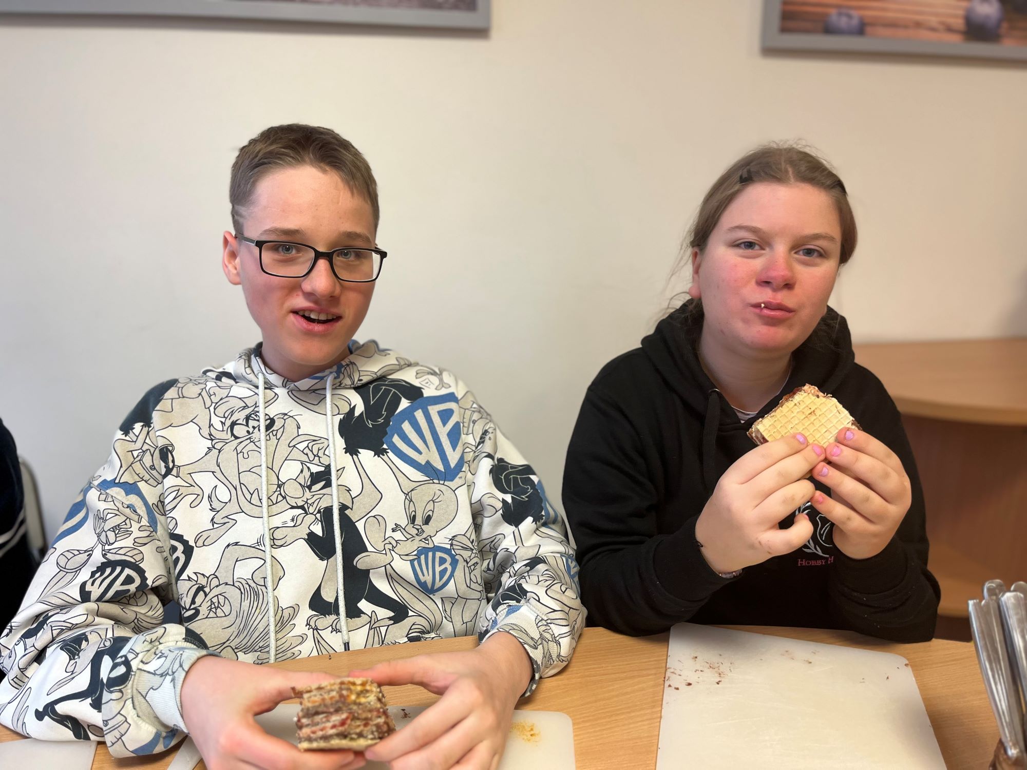 W listopadzie uczniowie klasy 4a, 7a i 7b wzięli udział w projekcie edukacyjnym Kuchenne rewolucje i przygotowali naleśniki nadziewane owocami, dżemami i kremem czekoladowym. Dodatkowo spotkali się i przygotowali wafle przekładane. Pracy było mnóstwo a pysznego jedzenia jeszcze więcej.