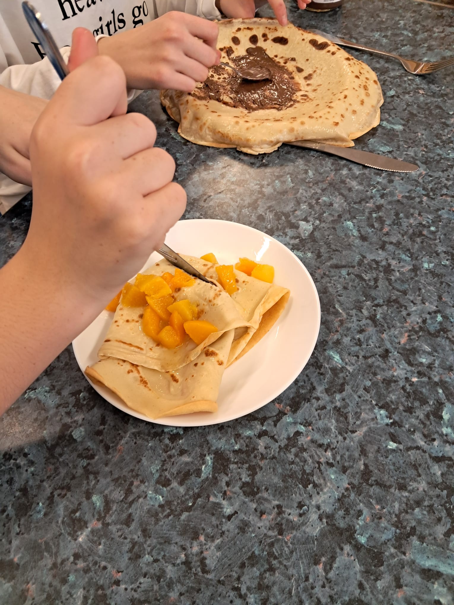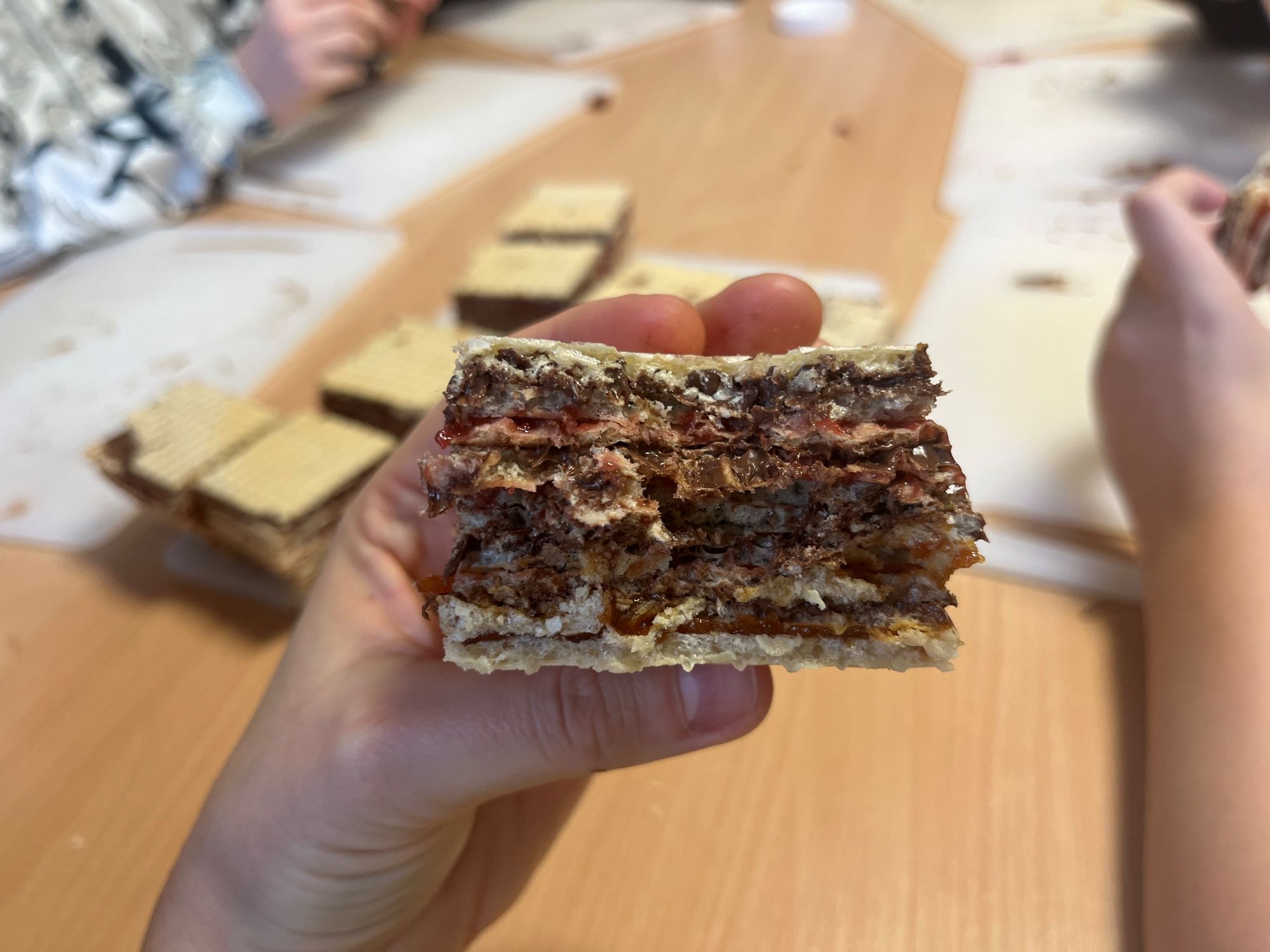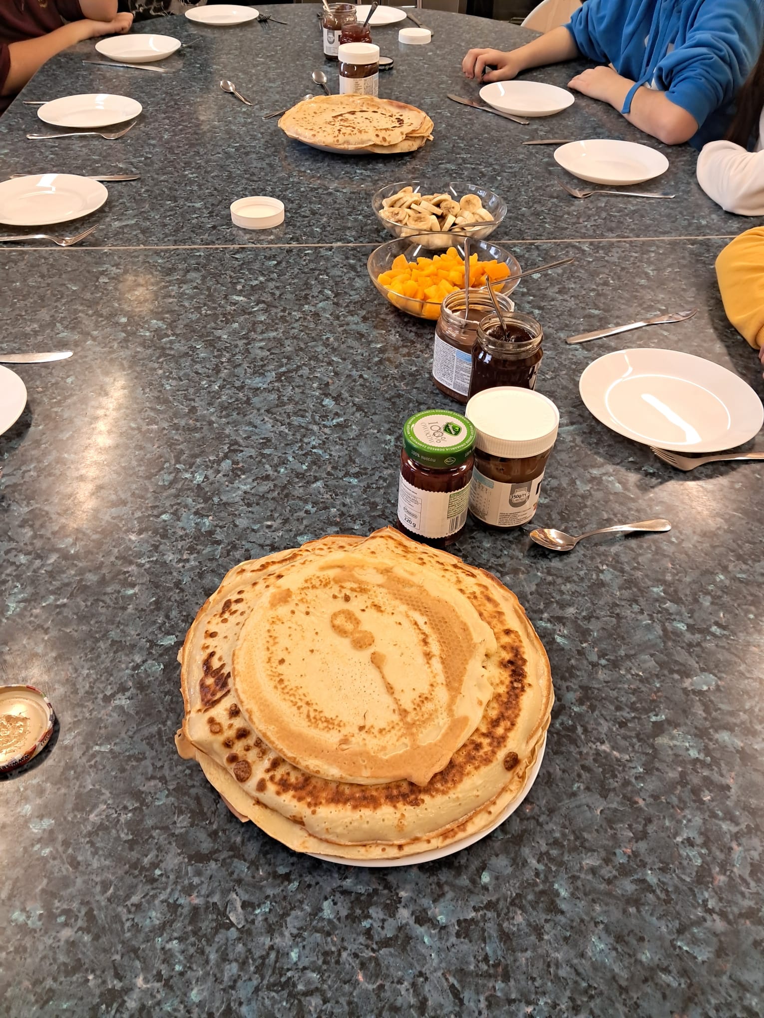 W listopadzie uczniowie klasy 4a, 7a i 7b wzięli udział w projekcie edukacyjnym Kuchenne rewolucje i przygotowali naleśniki nadziewane owocami, dżemami i kremem czekoladowym. Dodatkowo spotkali się i przygotowali wafle przekładane. Pracy było mnóstwo a pysznego jedzenia jeszcze więcej.
