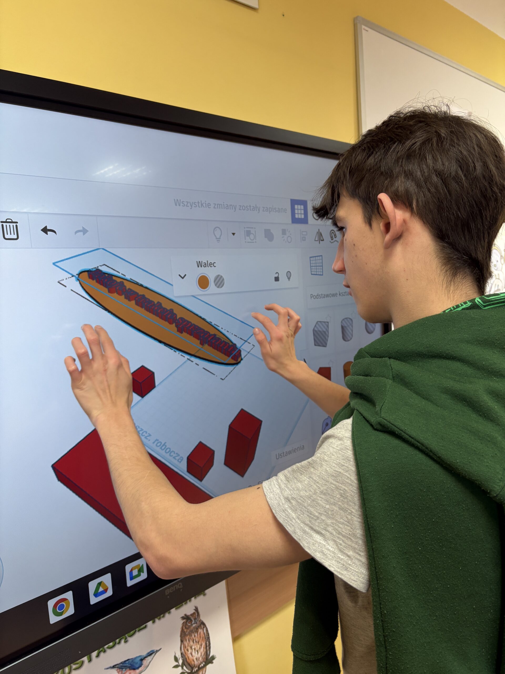 Uczniowie klas branżowych uczestniczyli w ostatniej już lekcji realizowanej w ramach projektu Lekcje zawodowe nie muszą być nudne. Podczas zajęć uczniowie poznali zasadę pracy drukarki 3D oraz przygotowali w Thinecard projekt zawieszki klamkowej do sali hotelarskiej. Wszystkie zawieszki były profesjonalnie przygotowane. Teraz przed uczestnikami wydruk opracowanych projektów.
