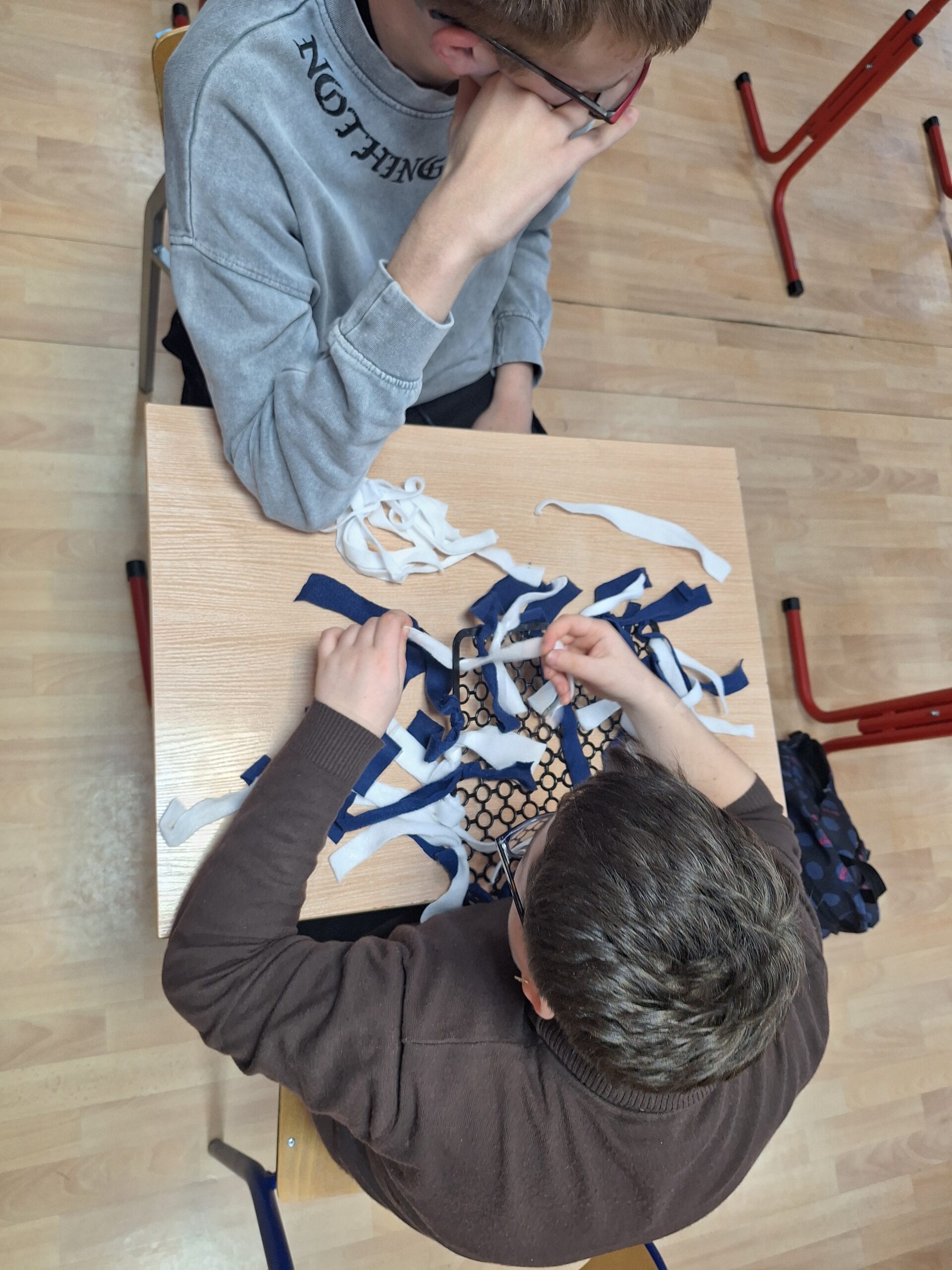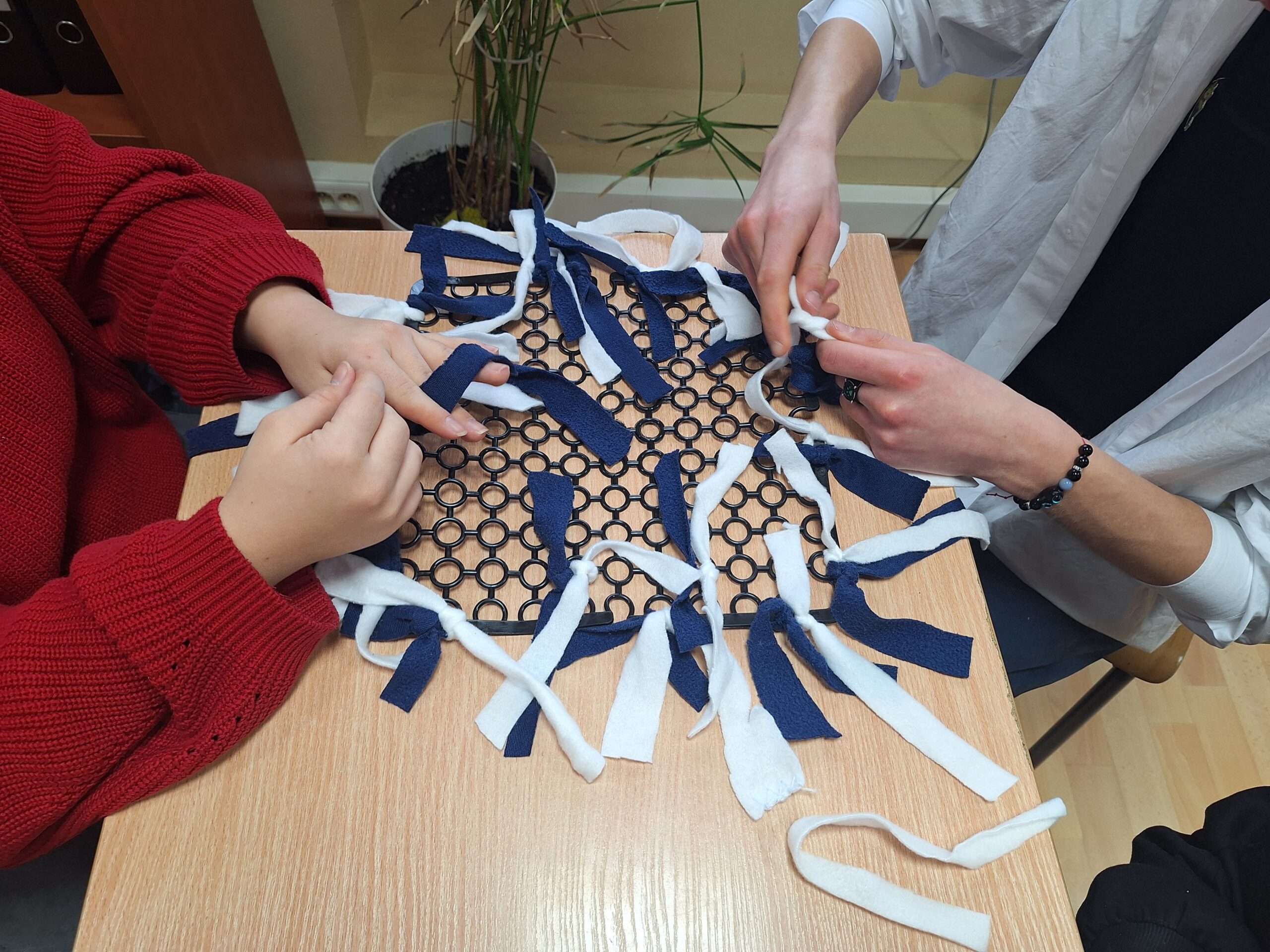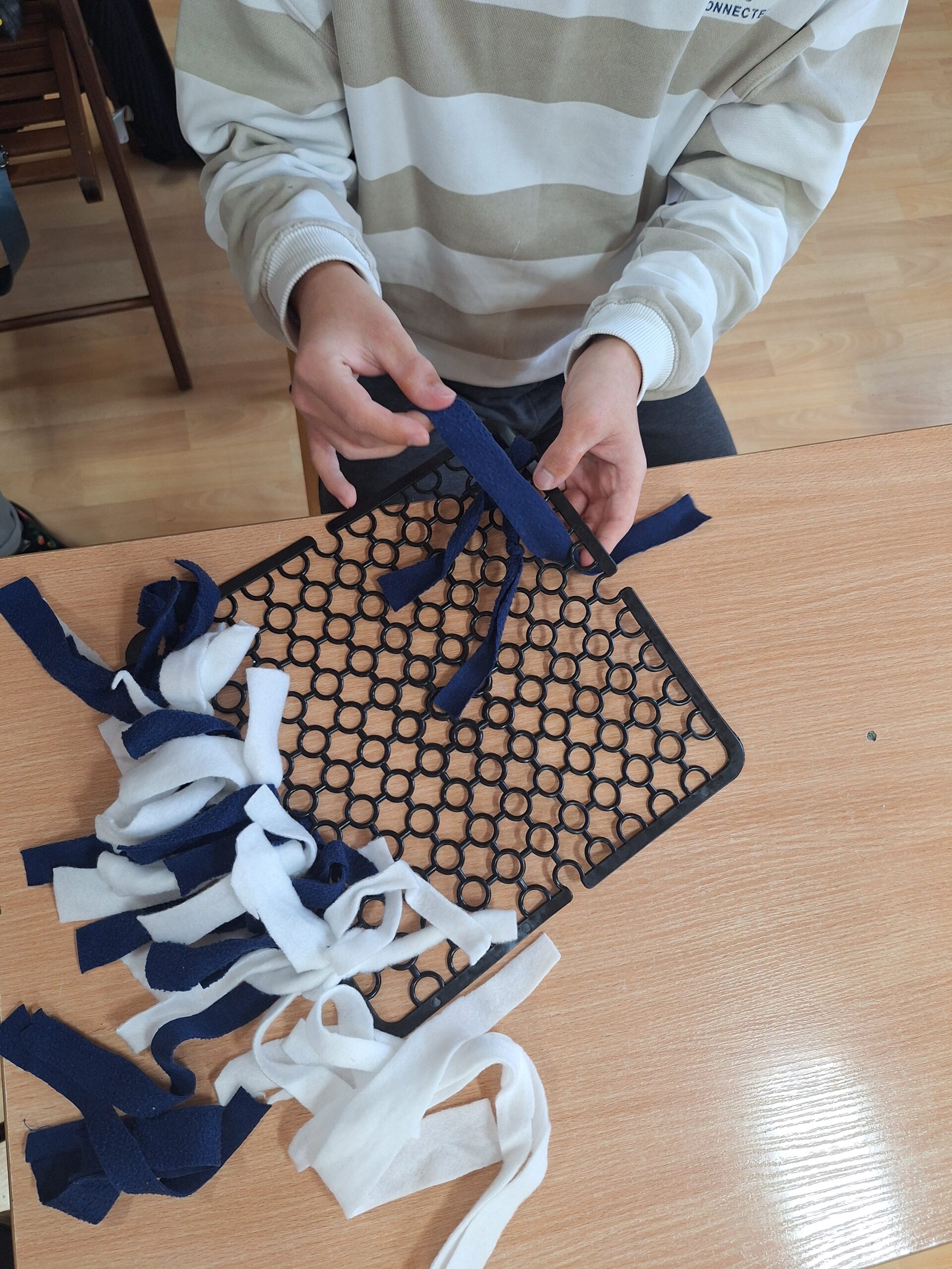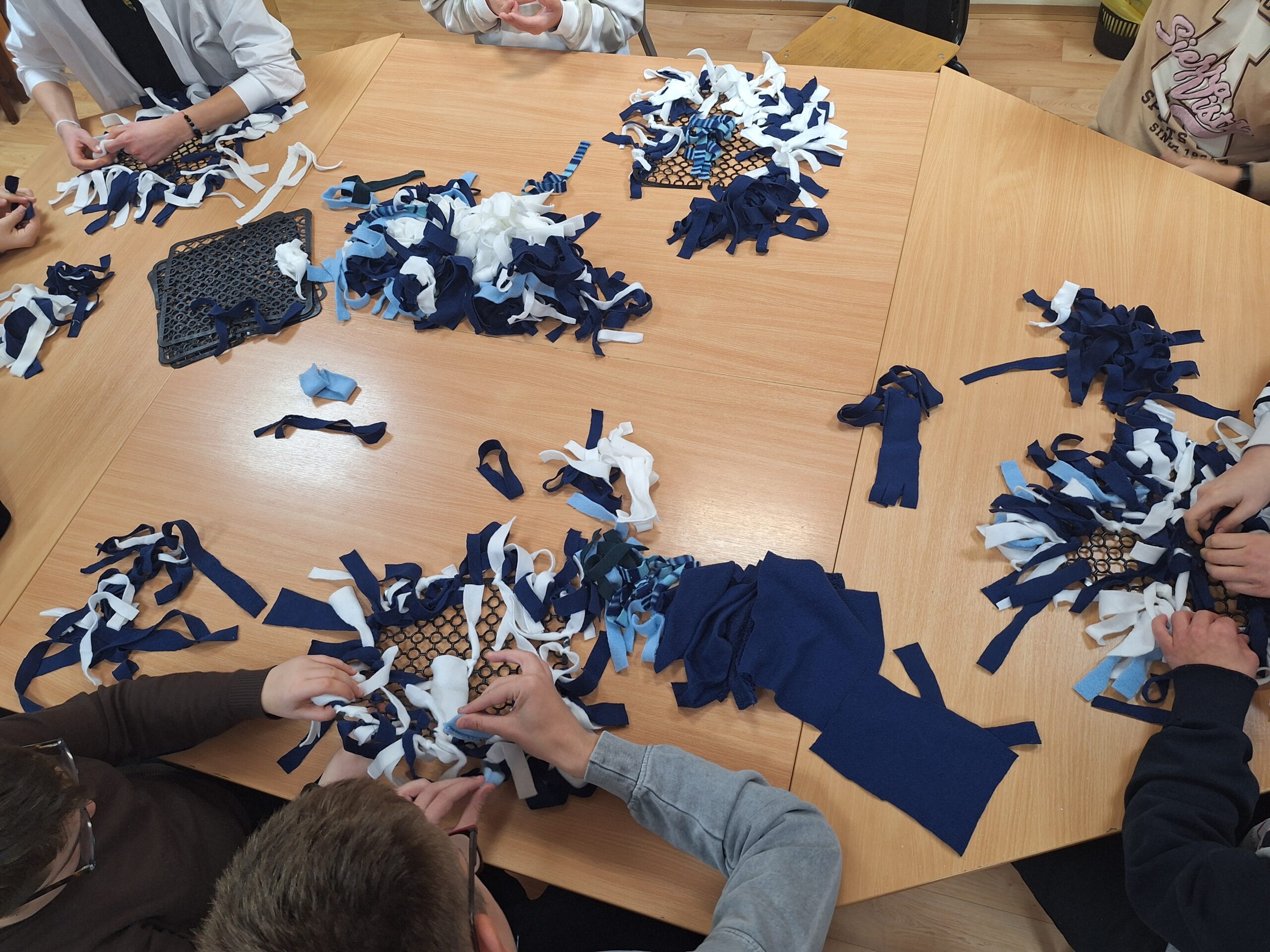 Podczas praktyk wspomaganych nasi uczniowie wykazali się dużą aktywnością i zaangażowaniem, przygotowując maty węchowe dla zwierząt ze schroniska. Każdy etap pracy od projektowania mat, przez wybór materiałów, po ich wykonanie był doskonałą okazją do rozwijania sprawności manualnej, koncentracji i umiejętności pracy w grupie.