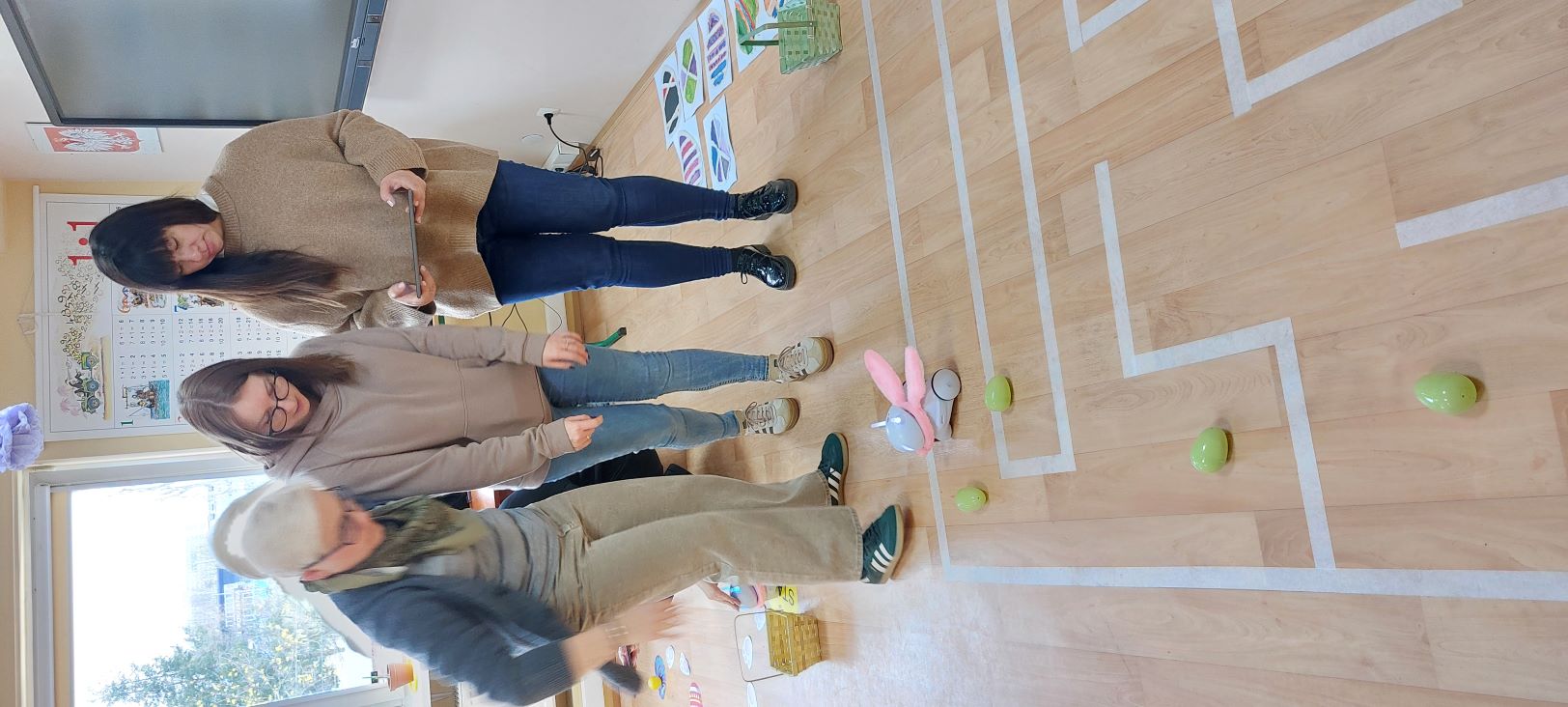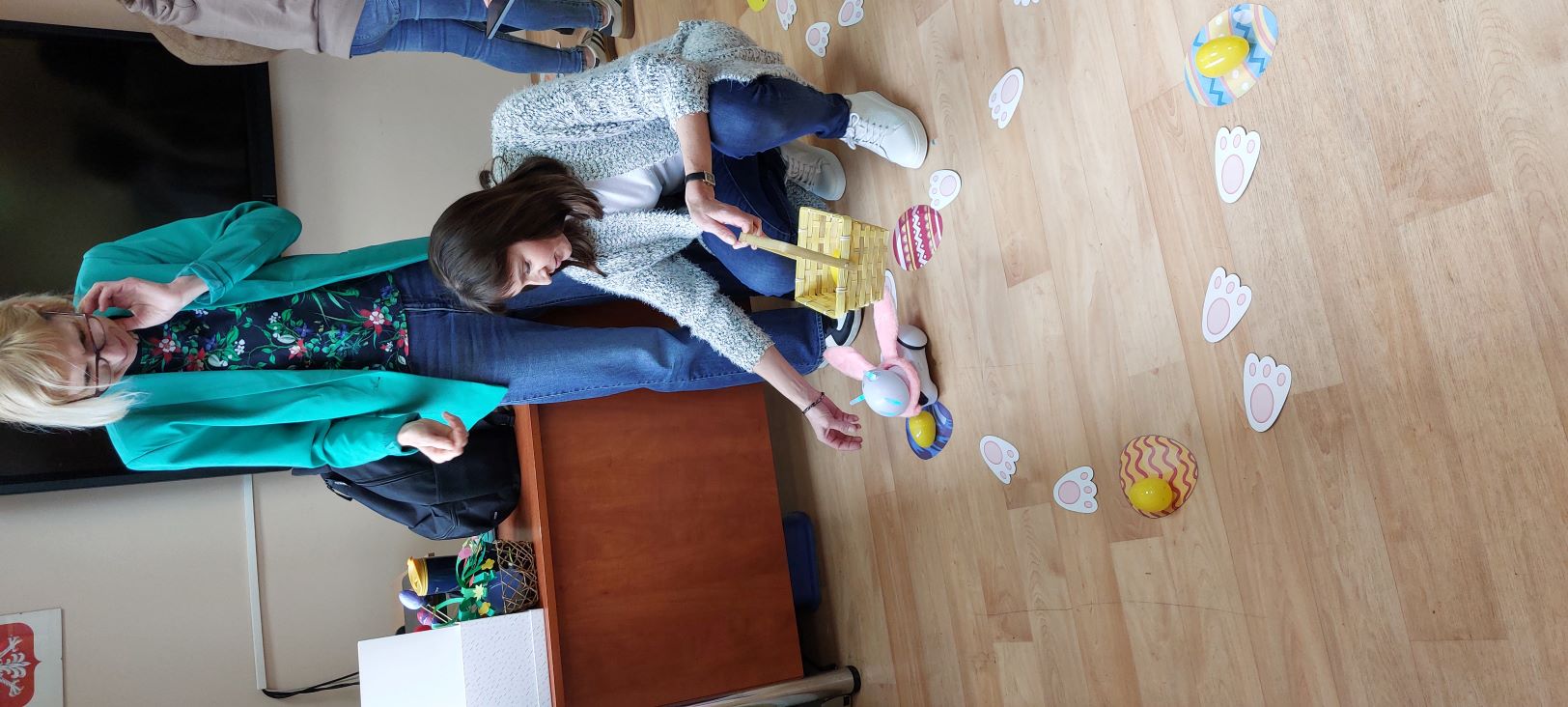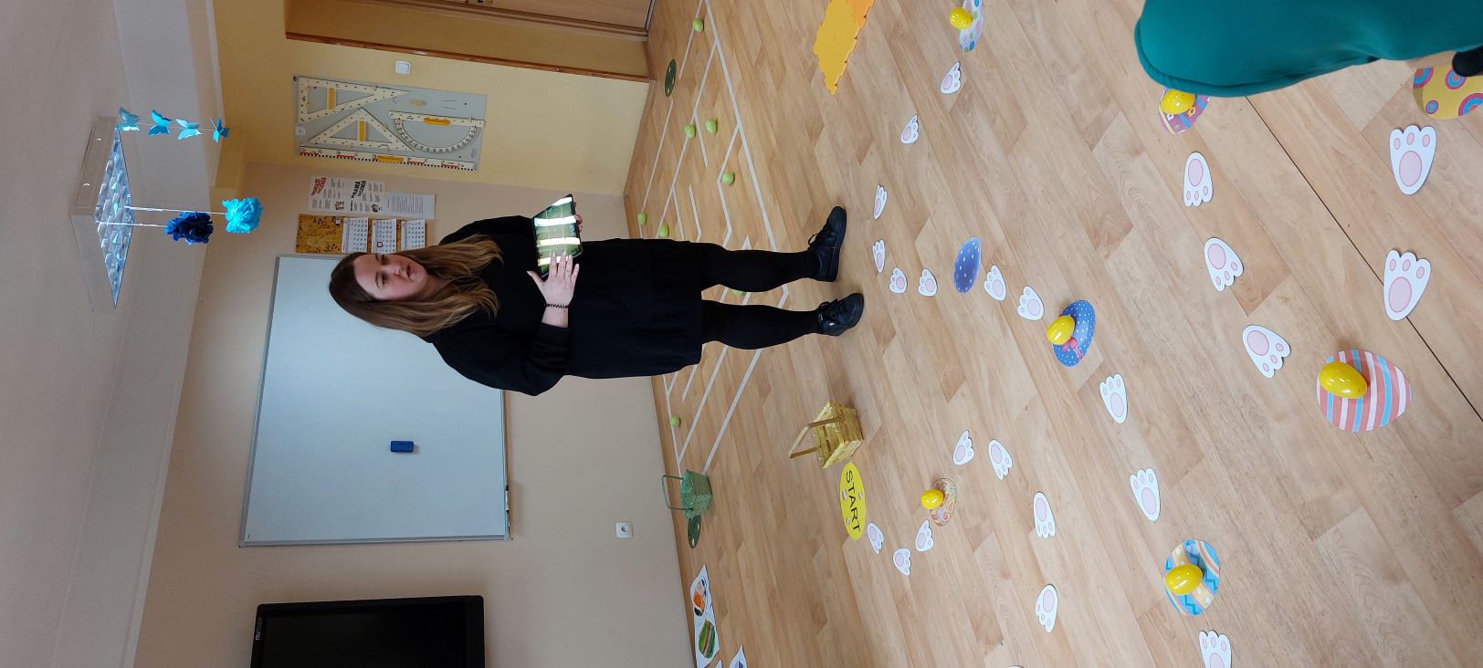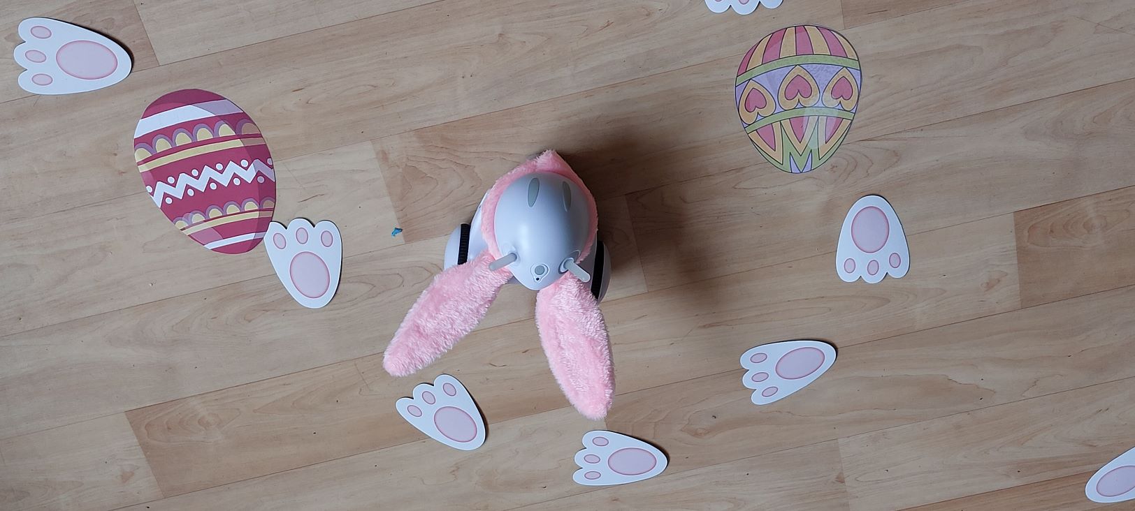 Pani Zosia zaprezentowała w formie warsztatowej zasady obsługi urządzenia za pomocą tabletu. Nauczyciele po przejściu do działań praktycznych chętnie wykonywali zadania związane ze zbliżającymi się świętami wielkanocnymi. Sterowali robotem wykorzystując jego funkcje do poruszania się w przód, tył i boki, zbierania przedmiotów (jajek), omijania przeszkód, zmieniania kolorów czy wydawania dźwięków.