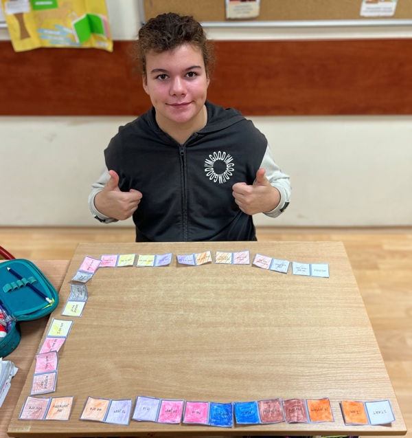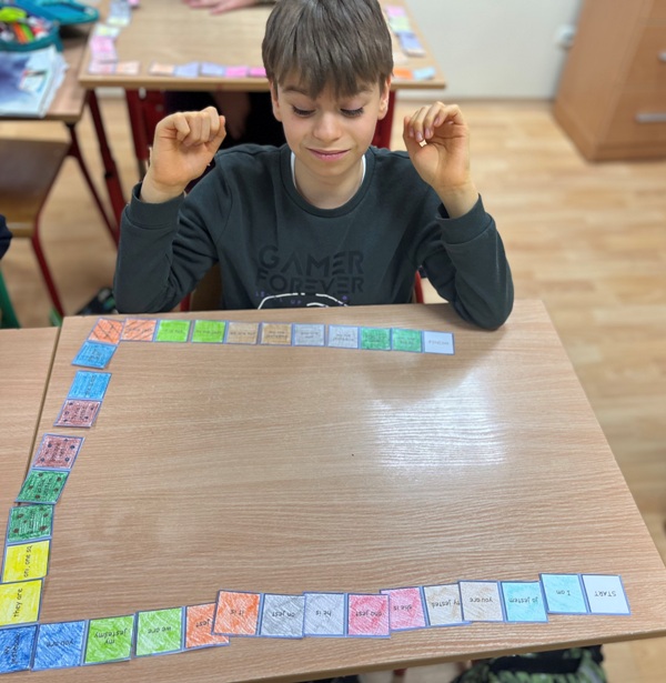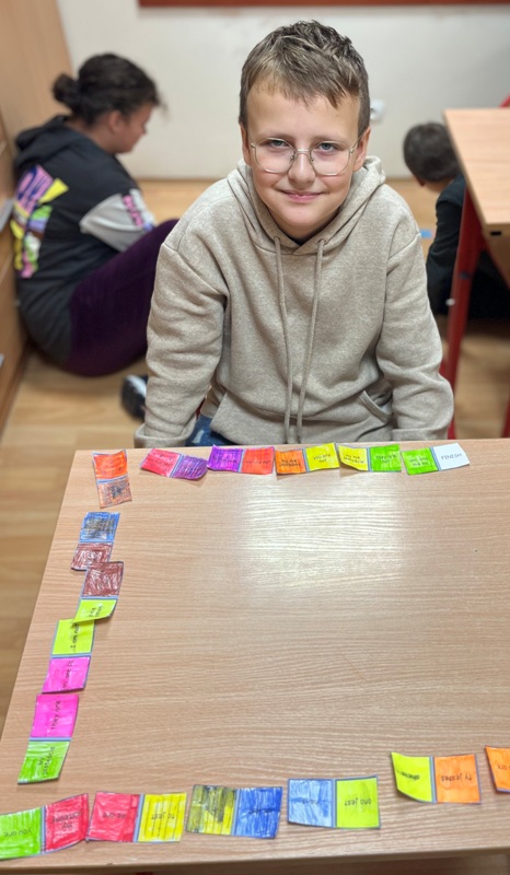 W październiku uczniowie klasy 4a realizując zadania projektu edukacyjnego „Tworzę I Korzystam” przygotowali grę domino z odmianą czasownika „to be”, utrwalając wiedzę i przygotowując się do sprawdzianu.