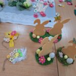 W ramach praktyk wspomaganych uczniowie z dużym zaangażowaniem przygotowywali ozdoby wielkanocne, które zostaną zaprezentowane podczas szkolnego kiermaszu. Podczas zajęć młodzież miała okazję rozwijać zdolności manualne, kreatywność oraz uczyć się współpracy w grupie. Powstało wiele pięknych i różnorodnych dekoracji, które wprowadzają w radosny, wiosenny nastrój. Uczniowie włożyli w swoje prace dużo serca, staranności i pomysłowości.