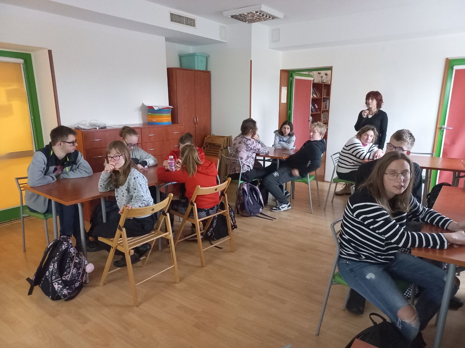 W piątek 29 listopada uczniowie klas 8e, 1ep, 1dp, 3dp, 3cp i 3ep po raz kolejny spotkali się, aby poznawać zwroty i słowa lokalnego języka na wesoło. Uczestnicy obejrzeli prezentację multimedialną oraz słuchali zabawnych wierszy w gwarze poznańskiej. Dużą frajdę zebranym sprawiło memory z latarkami.