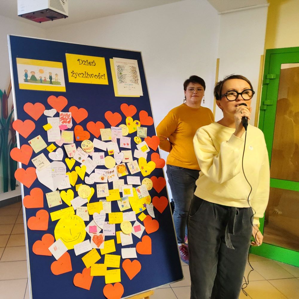 Na lekcjach tematycznych uczniowie zapoznali się z prezentacją, która przedstawiała znaczenie życzliwości i jej rolę w budowaniu relacji międzyludzkich. Prezentacja była również okazją do rozmów na temat wzajemnego szacunku i otwartości.